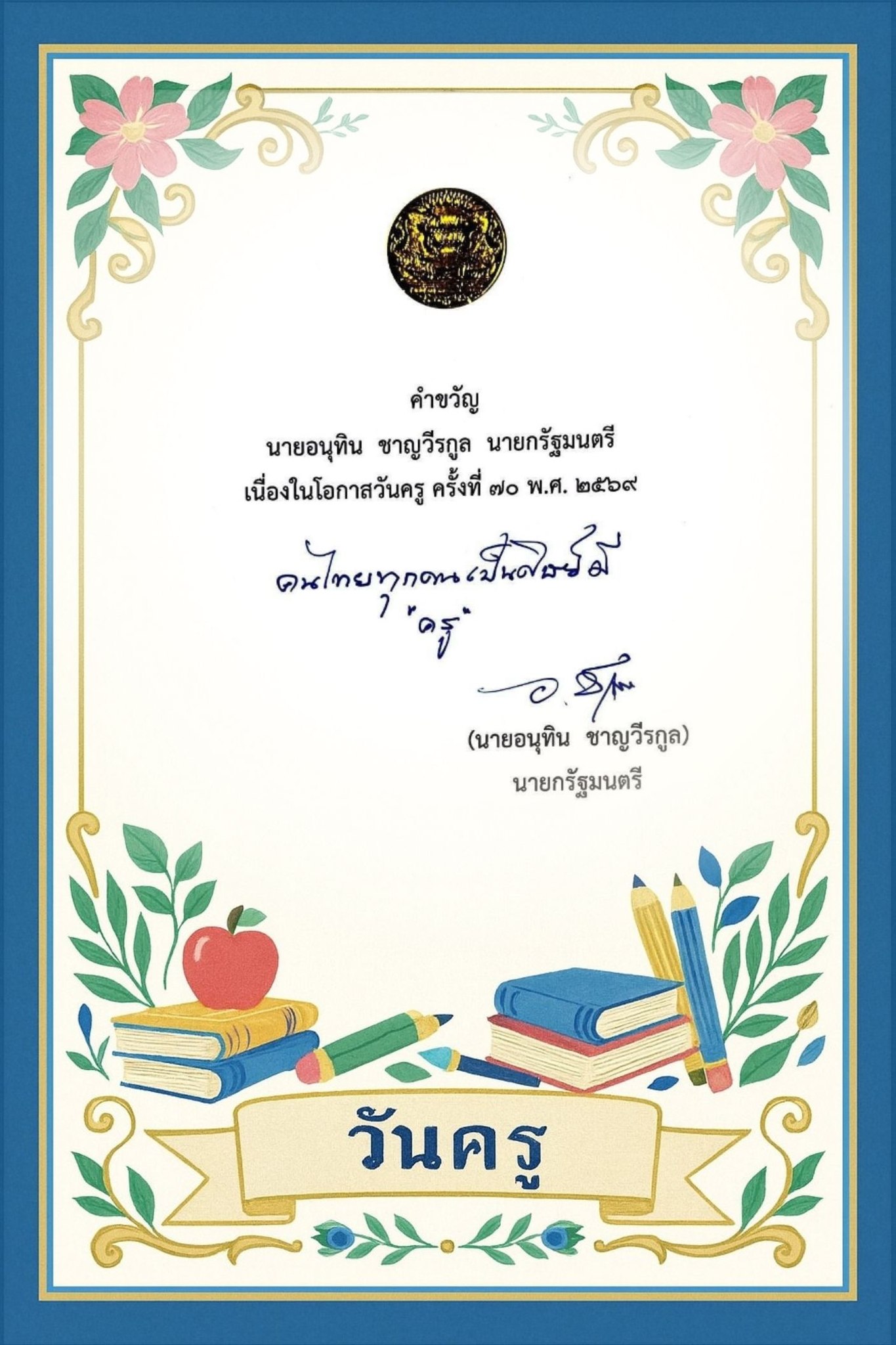 เนื่องในโอกาสวันครู ครั้งที่ ๗๐ พ.ศ. ๒๕๖๙