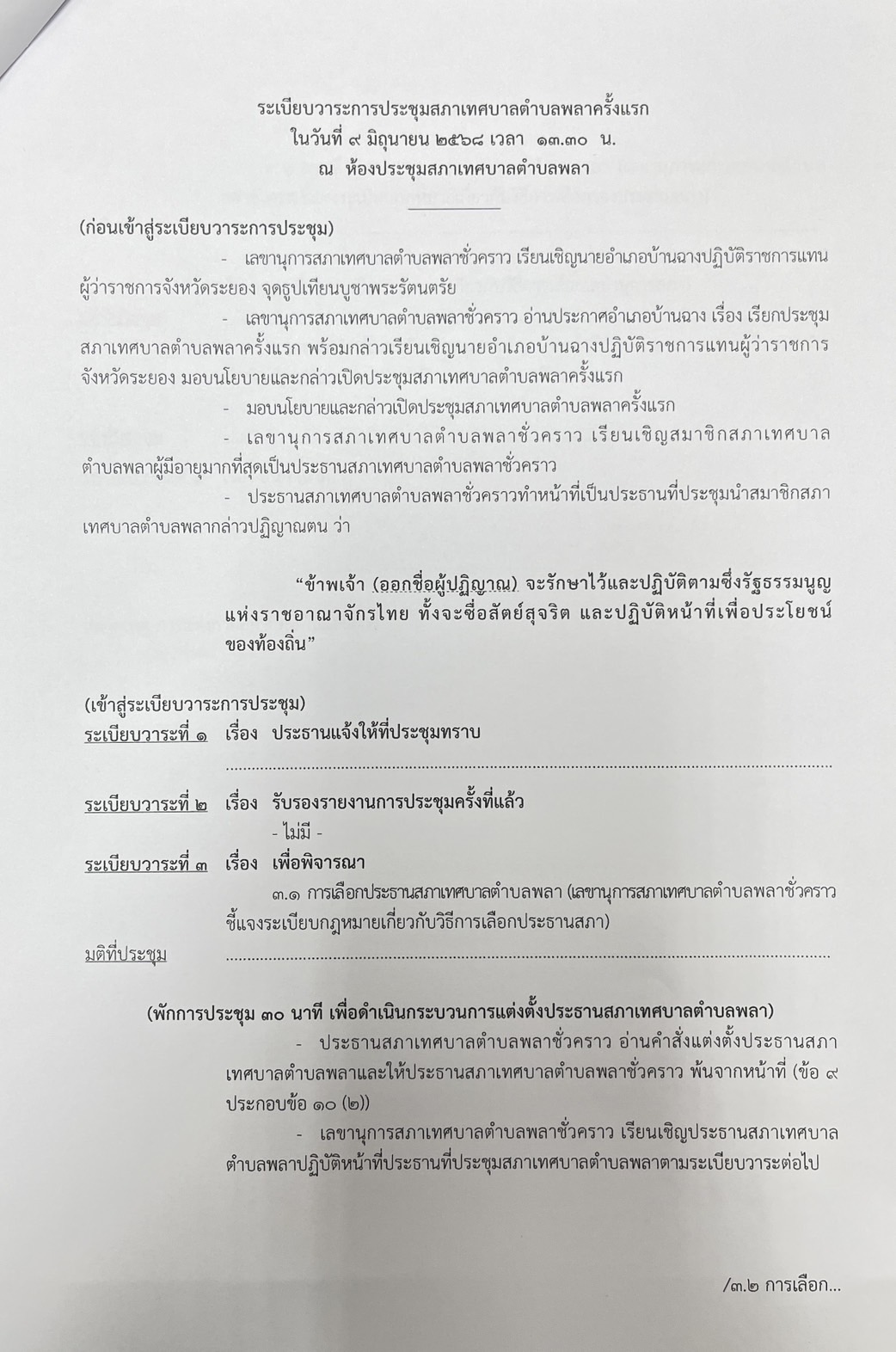 "การเรียกประชุมสภาเทศบาลตำบลพลาครั้งแรก"