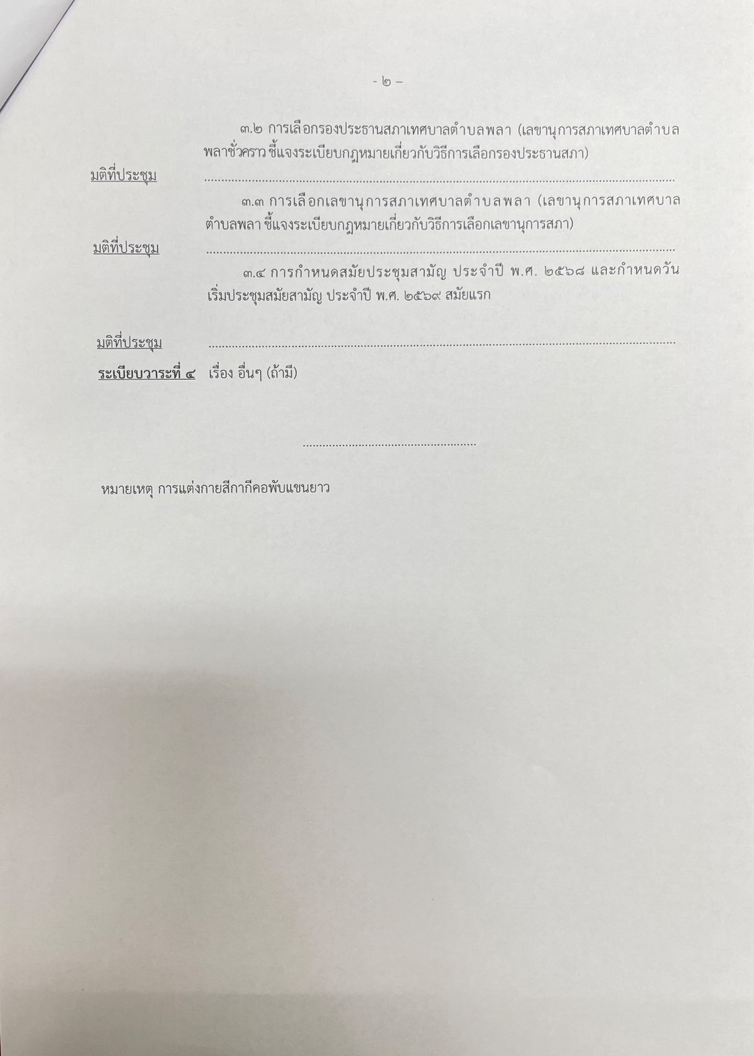 การเรียกประชุมสภาเทศบาลตำบลพลาครั้งแรก