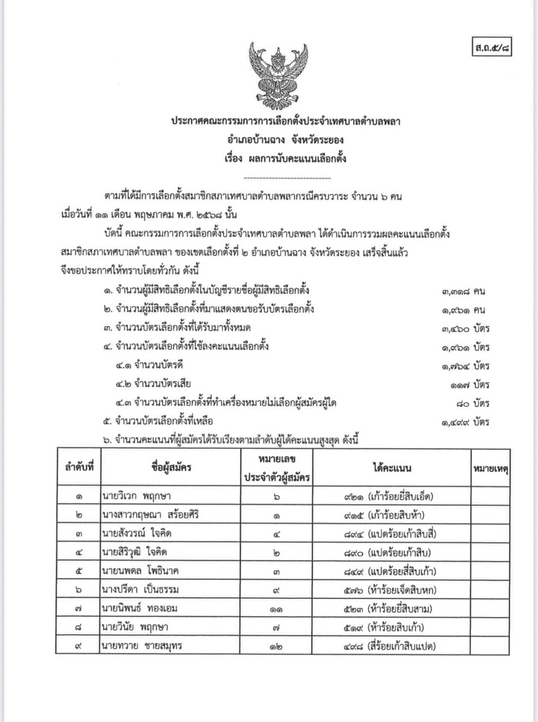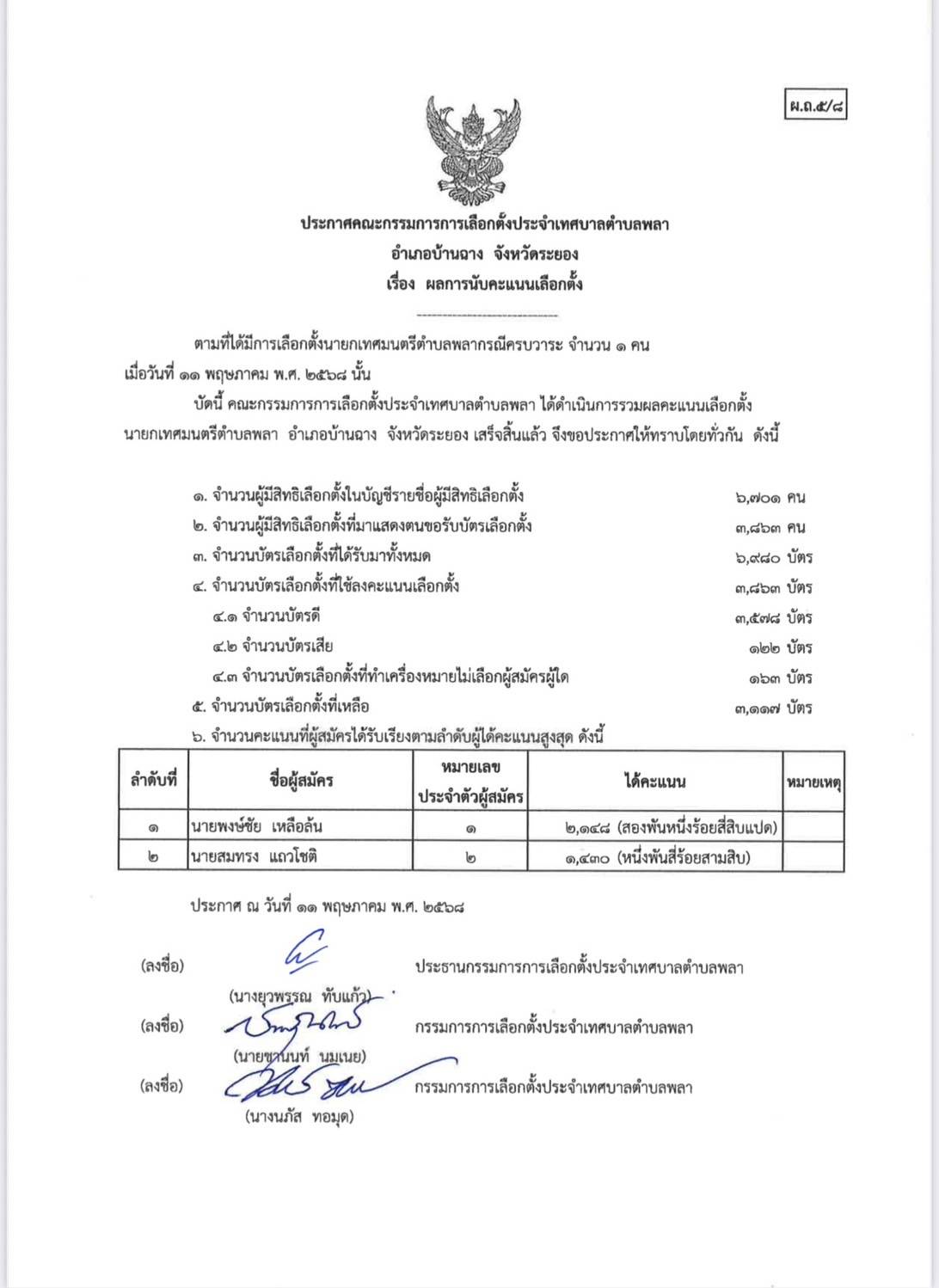 ผลการนับคะแนนเลือกตั้ง