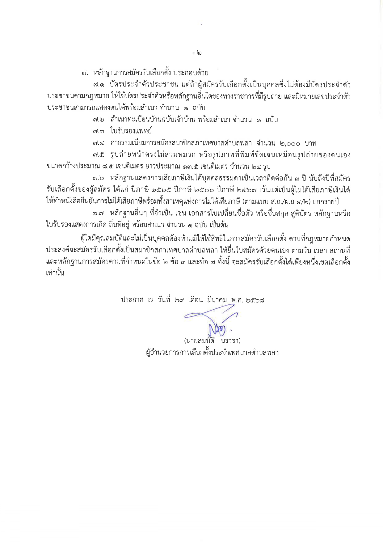 ประกาศผู้อำนวยการเลือกตั้งประจำเทศบาลตำบลพลา