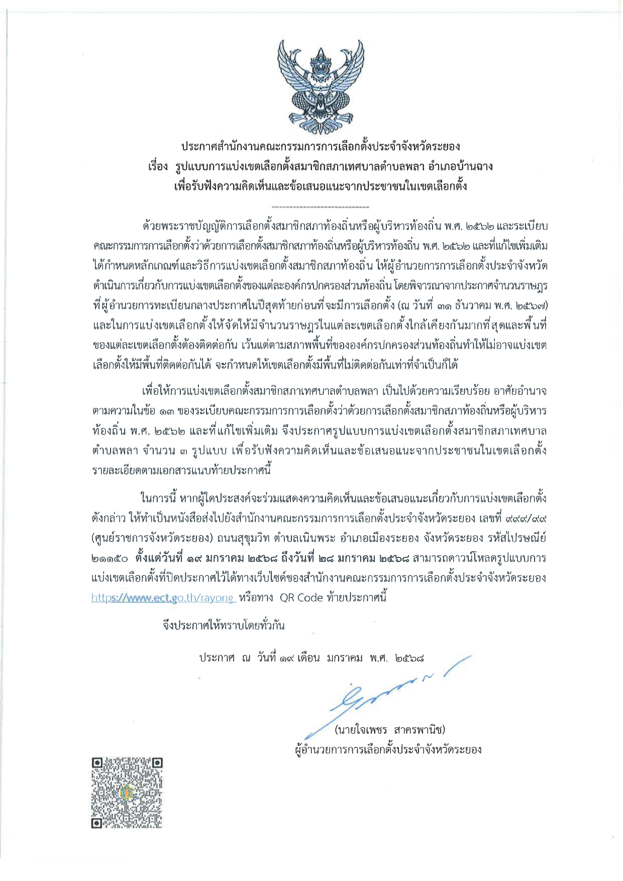 ประกาศสำนักงานคณะกรรมการการเลือกตั้งประจำจังหวัดระยอง