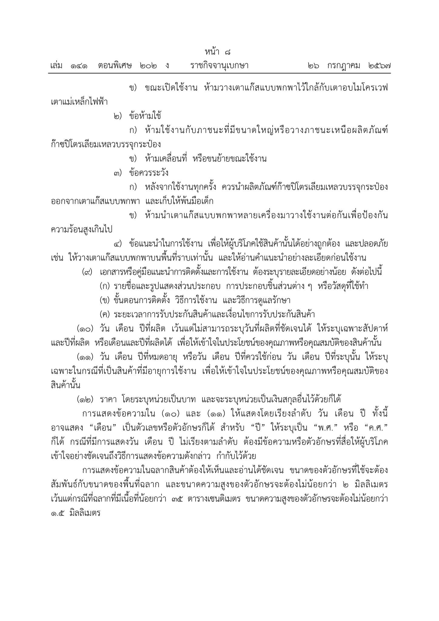 ประกาศคณะกรรมการว่าด้วยฉลากเรื่อง ให้ผลิตภัณฑ์ก๊าซปิโตเลียมเหลวบรรจุกระป๋องและผลิตภัณฑ์เตาแก๊สแบบพกพา เป็นสินค้าที่ควบคุมฉลาก