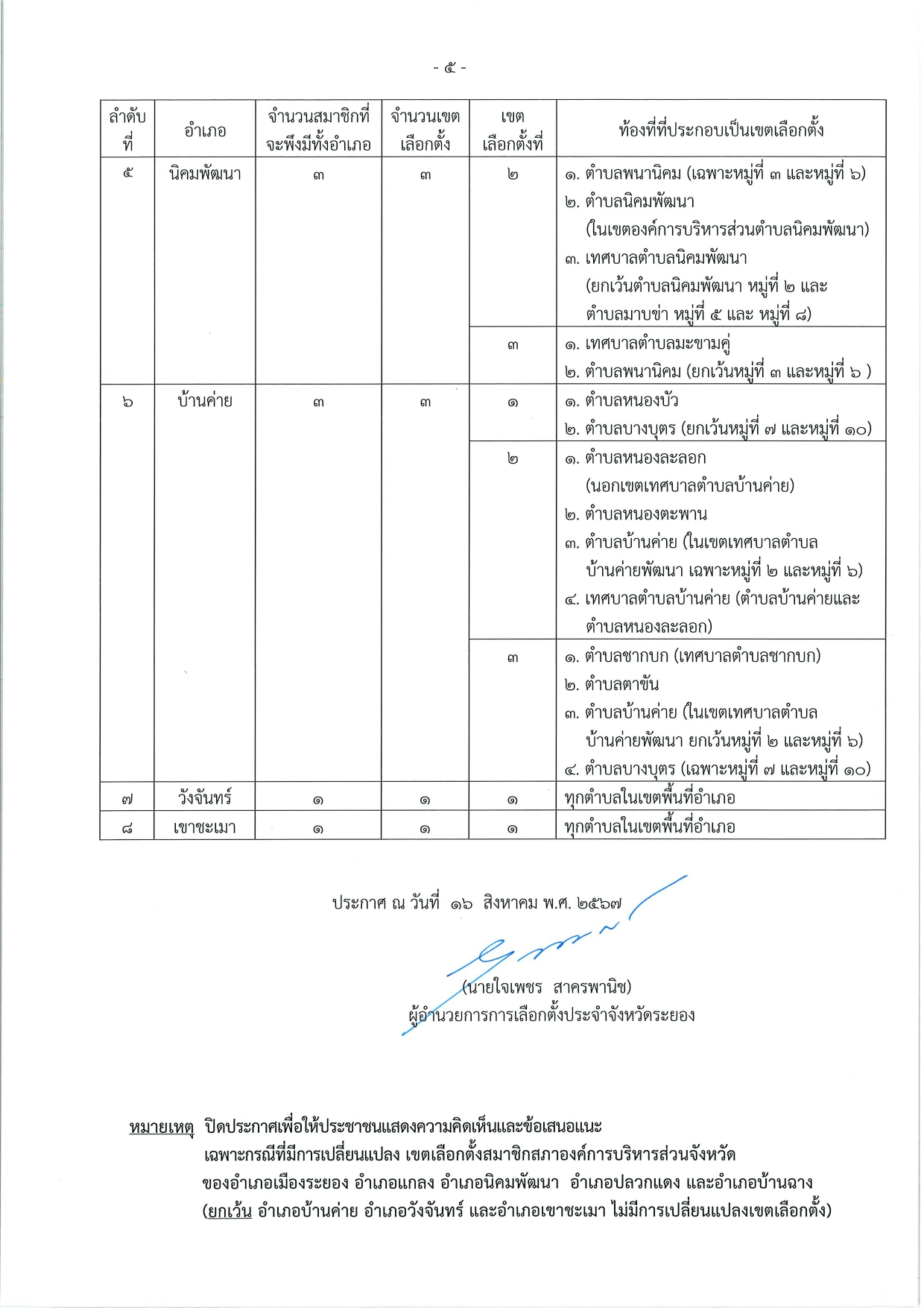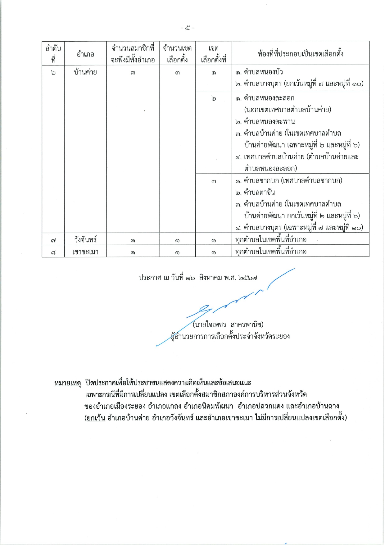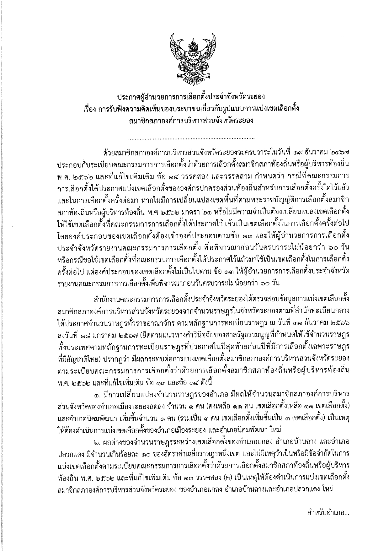 ประกาศสำนักงานคณะกรรมการการเลือกตั้งประจำจังหวัดระยอง