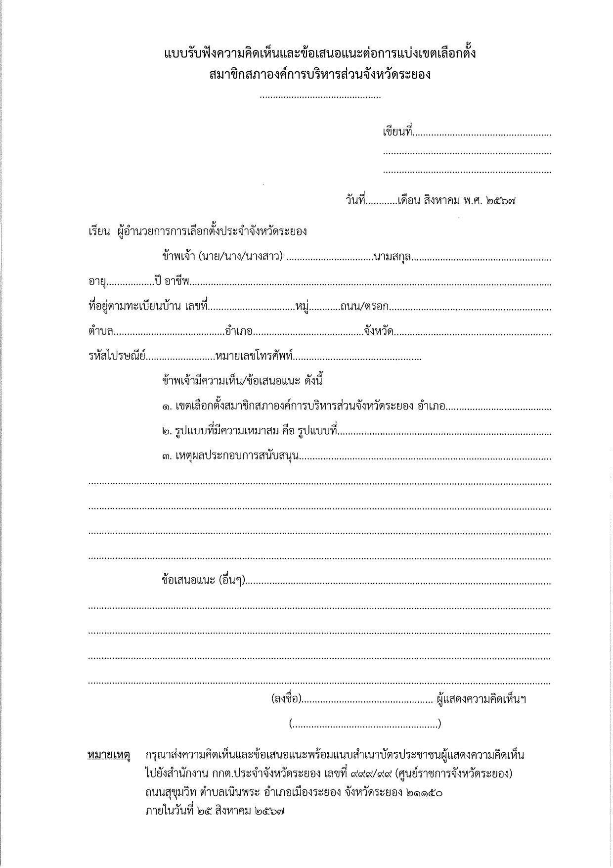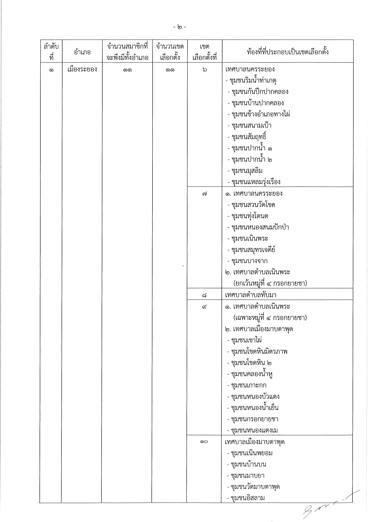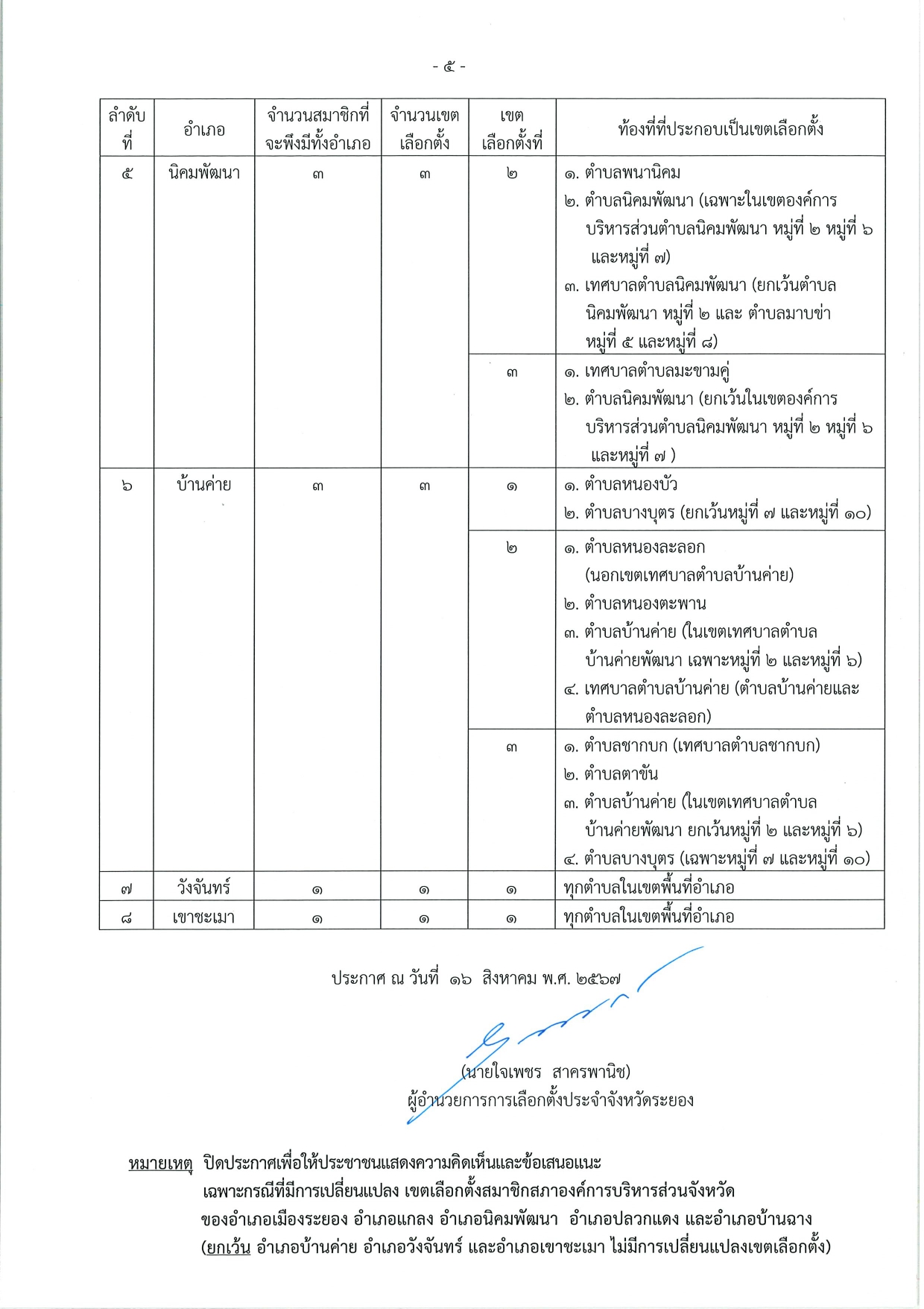 ประกาศสำนักงานคณะกรรมการการเลือกตั้งประจำจังหวัดระยอง