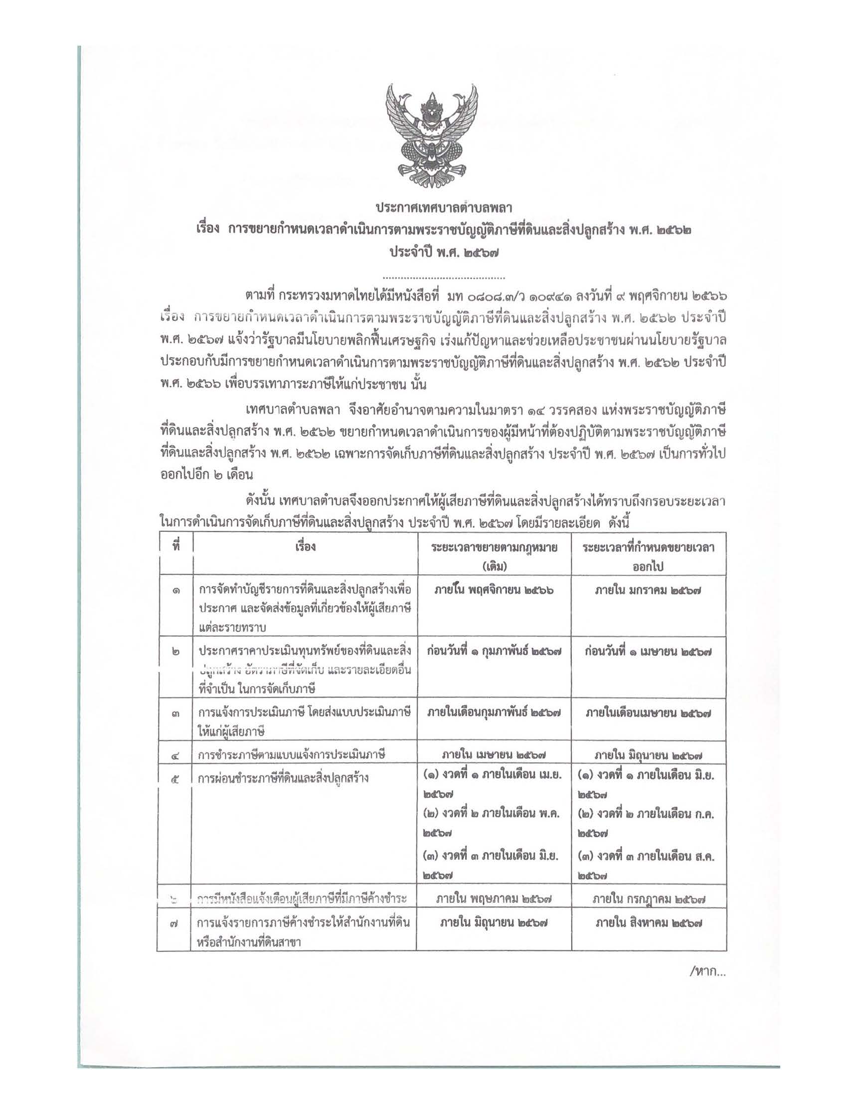 ประกาศ การขยายกำหนดเวลาดำเนินการตามพระราชบัญญัติภาษีที่ดิน