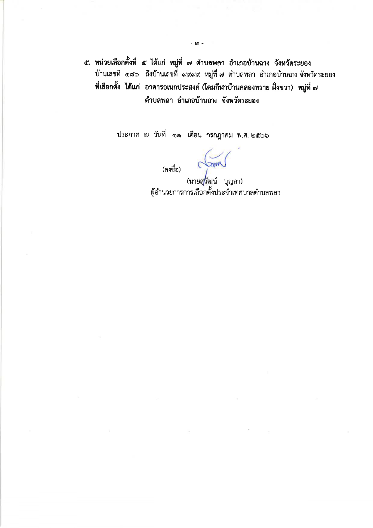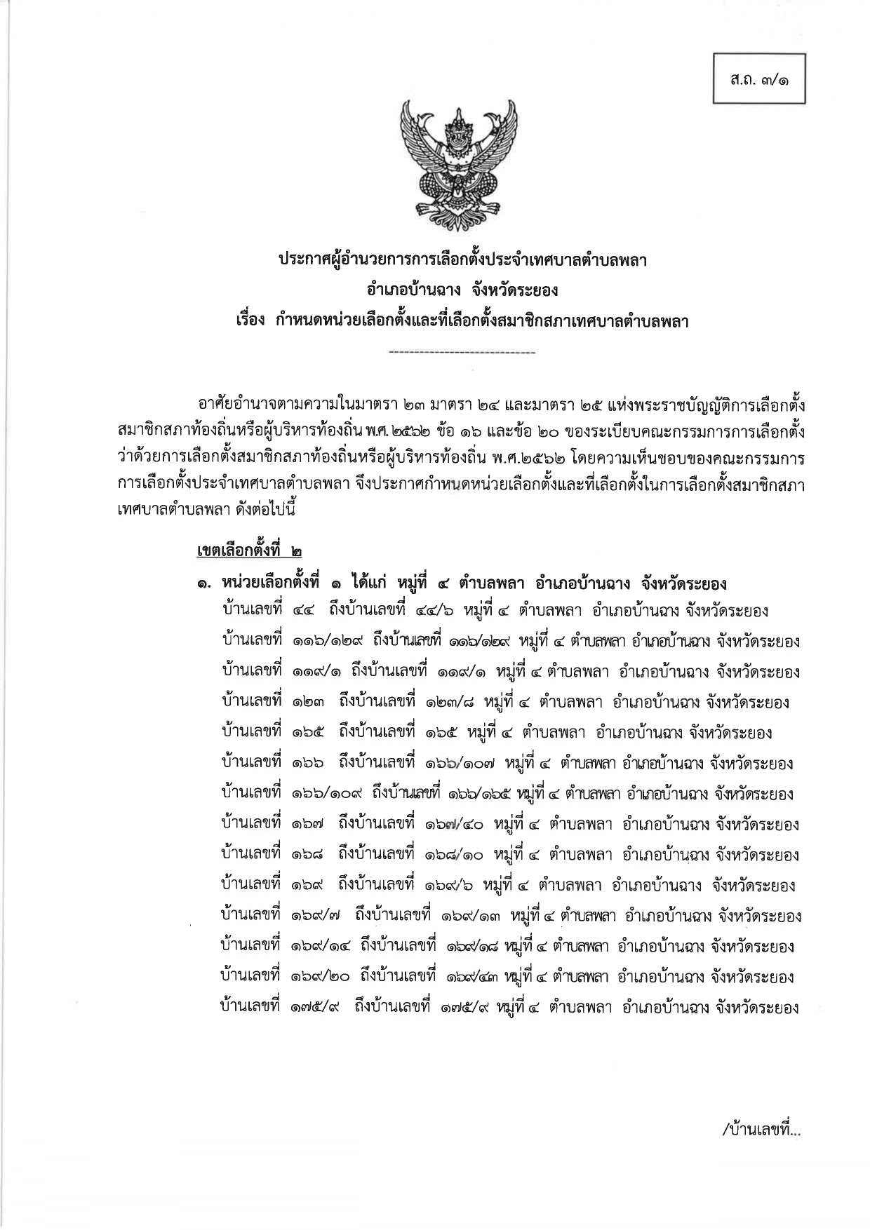 ประกาศ กำหนดหน่วยเลือกตั้งและที่เลือกตั้งสมาชิกสภาเทศบาลตำบลพลา
