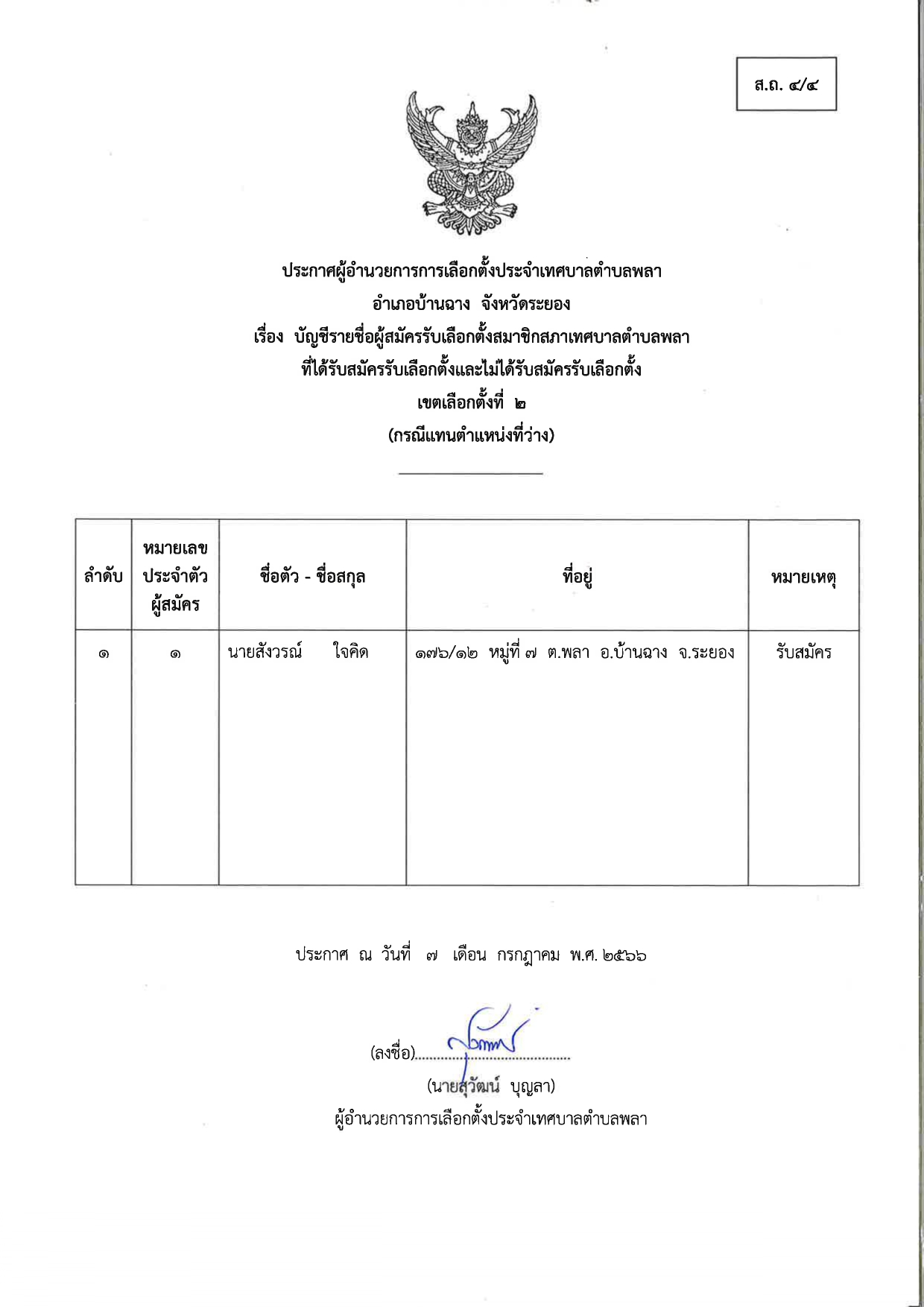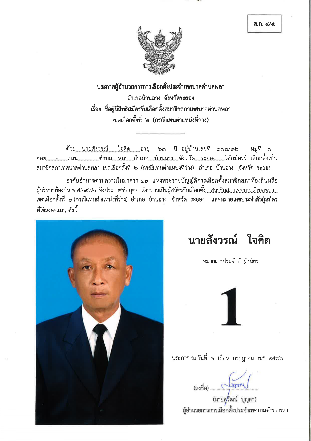 ประกาศผู้อำนวยการเลือกตั้งประจำเทศบาลตำบลพลา