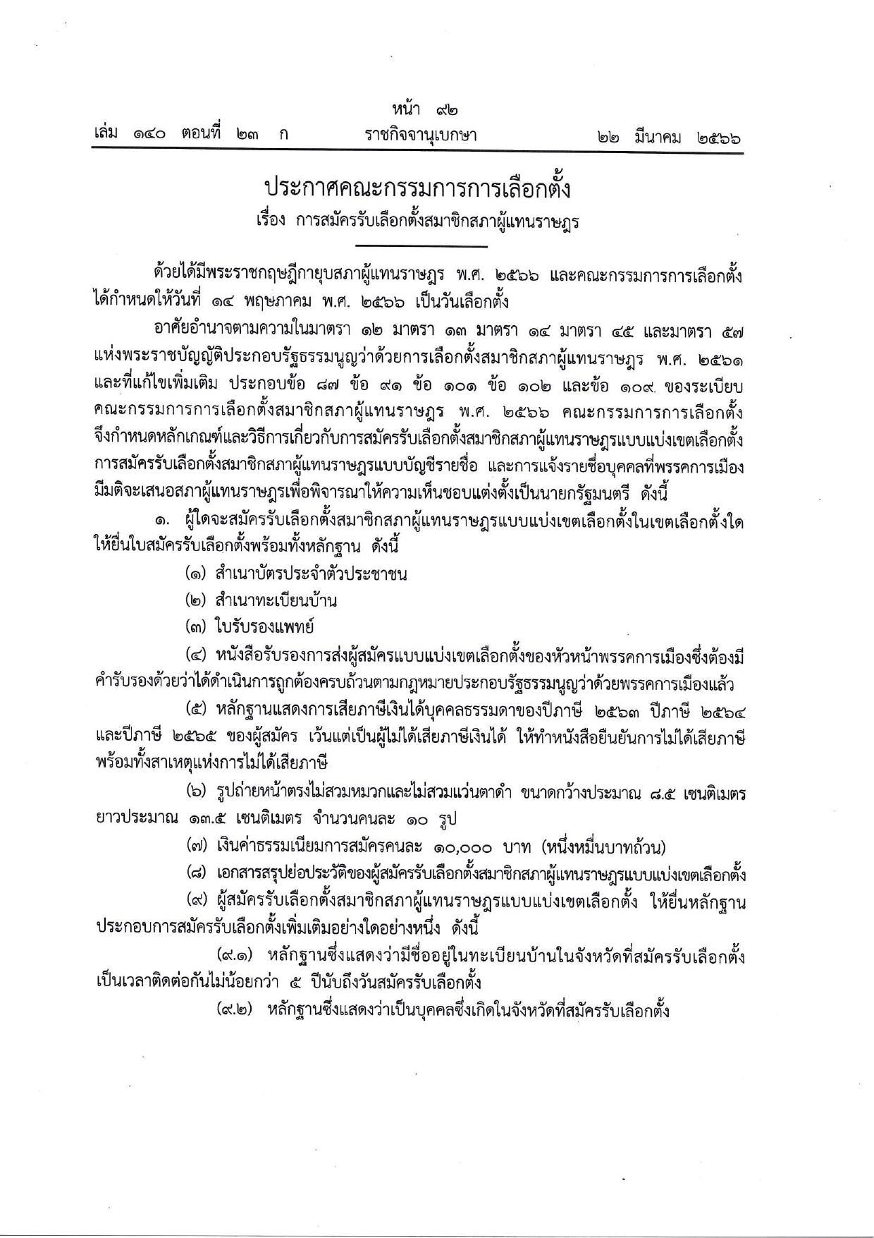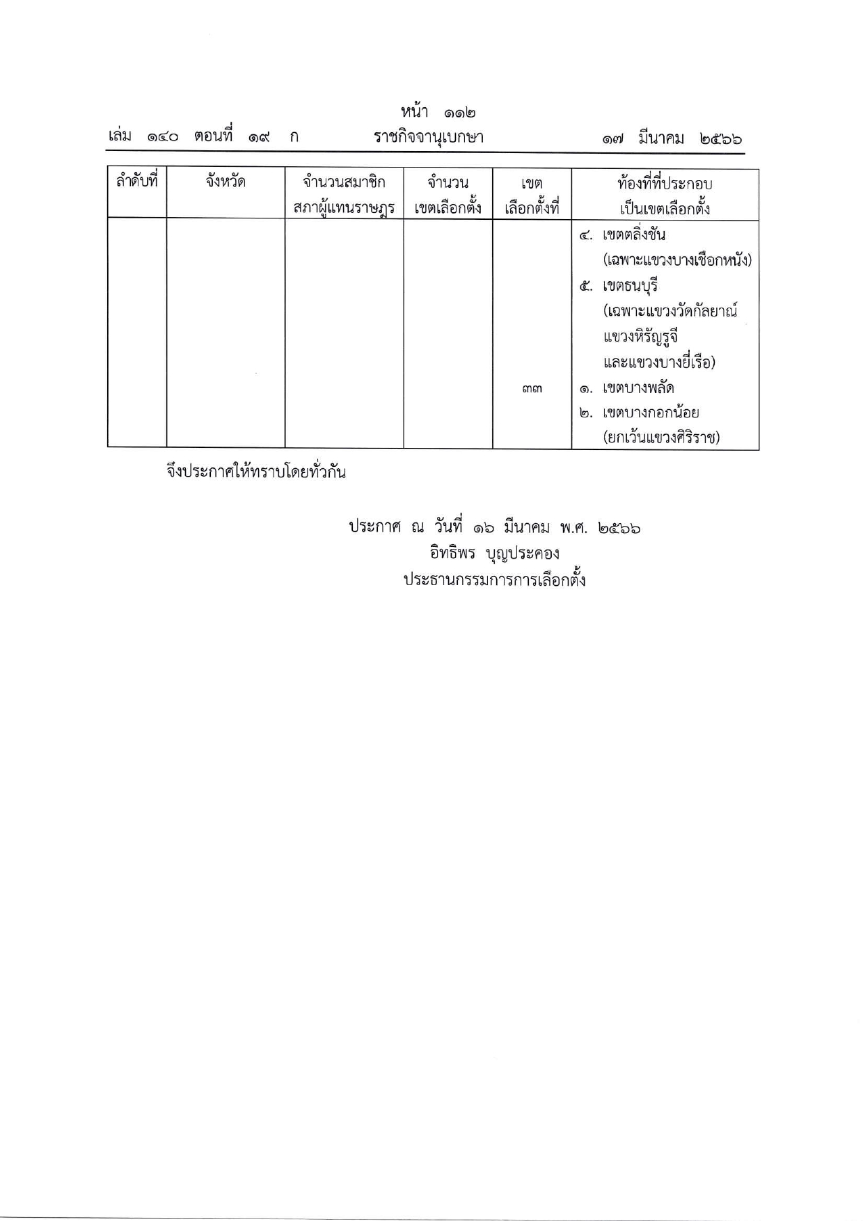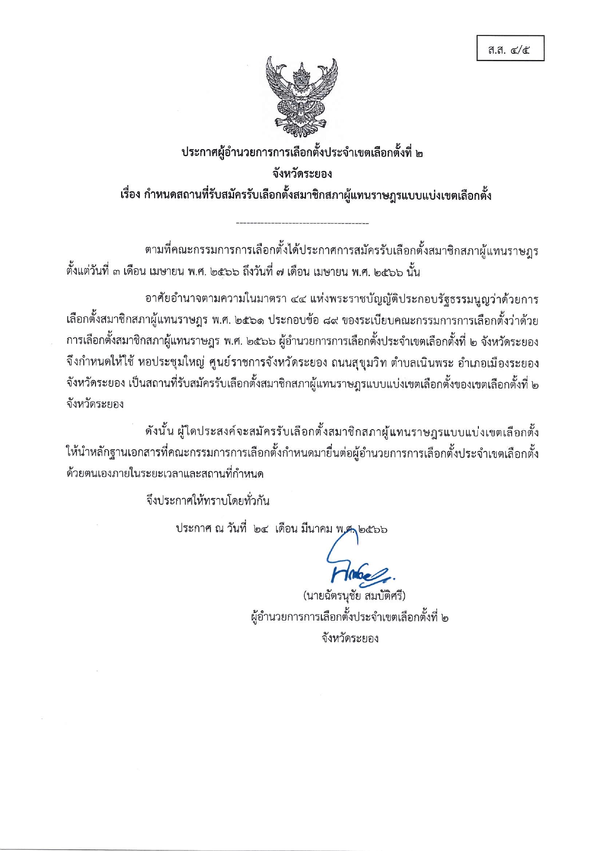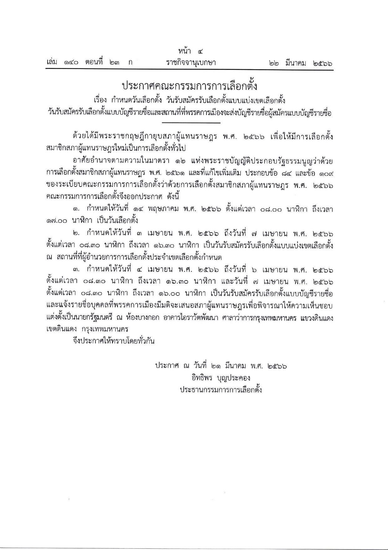 ประกาศคณะกรรมการการเลือกตั้ง