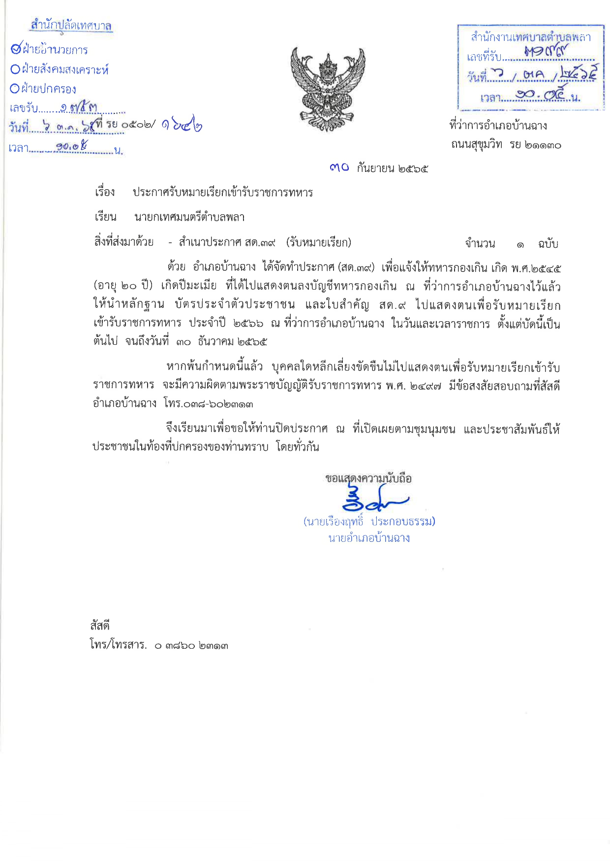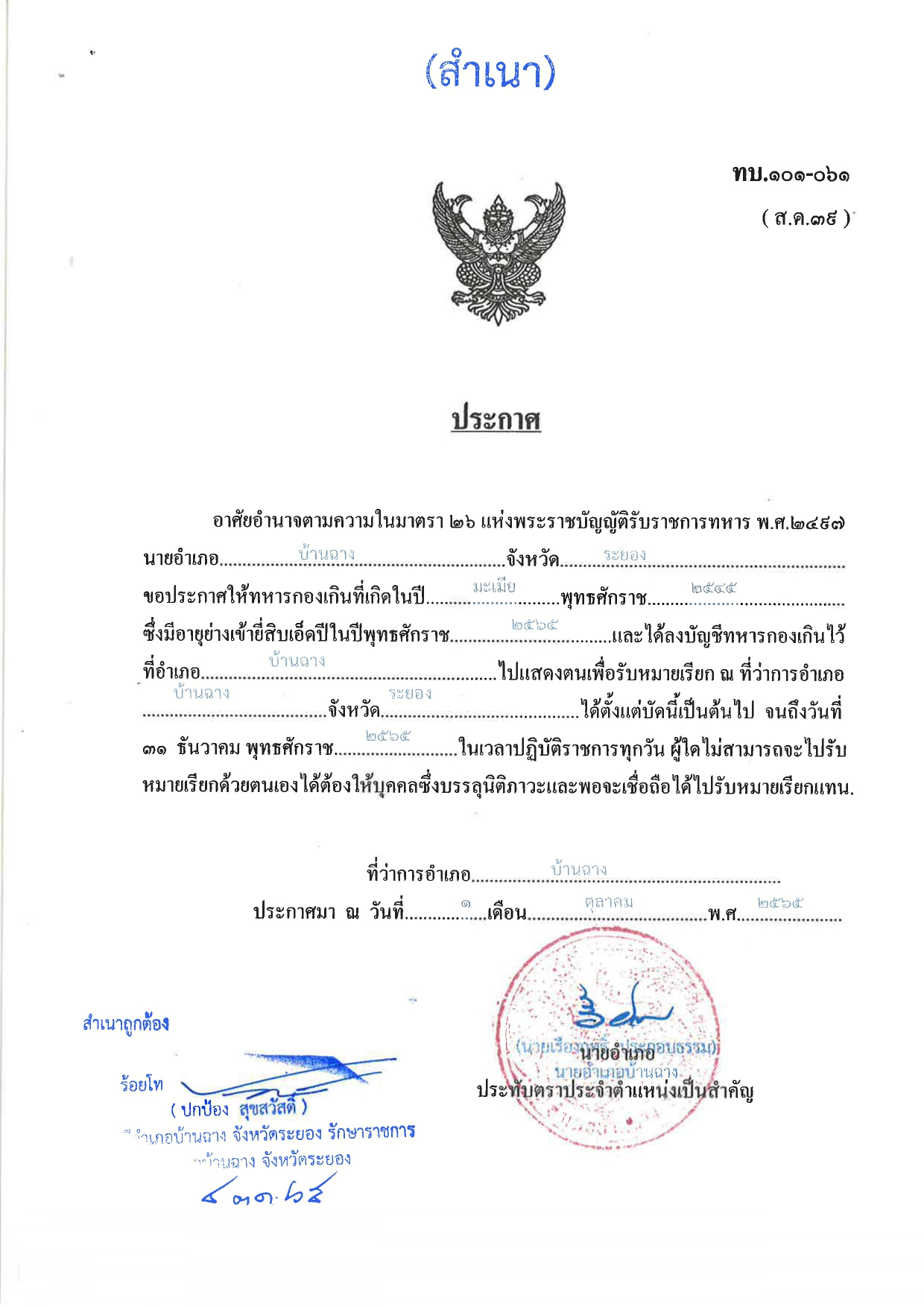 ประกาศรับหมายเรียกเข้ารับราชการทหาร