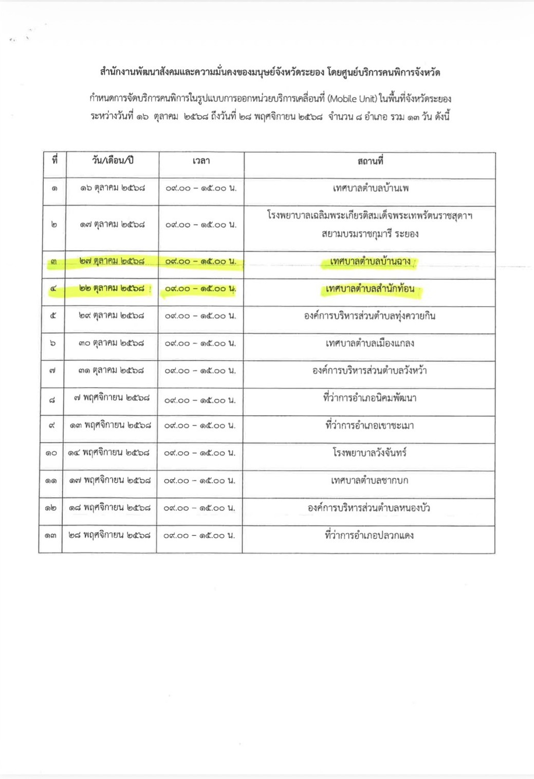 - แจ้งกำหนดการจัดบริการคนพิการในรูปแบบการออกหน่วยบริการเคลื่อนที่ (Mobile Unit) ในพื้นที่จังหวัระยอง