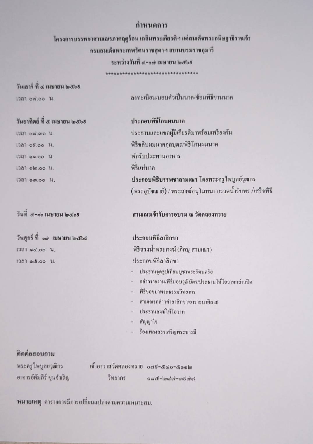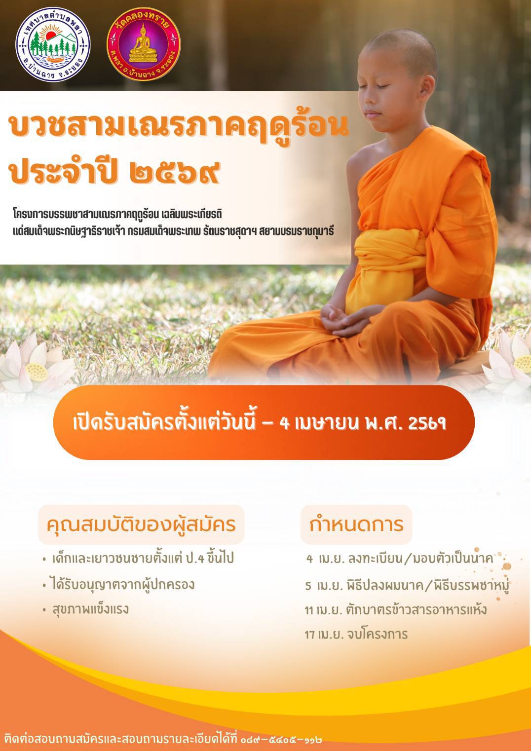 "โครงการบรรพชาสามเณรภาคฤดูร้อน ประจำปี ๒๕๖๙"
