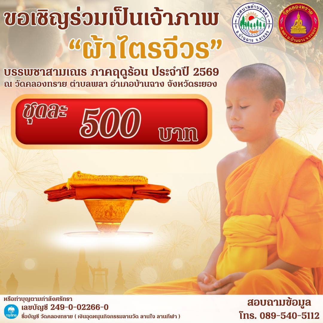 📢 เทศบาลตำบลพลาร่วมกับวัดคลองทราย รับสมัครเด็กและเยาวชนชาย