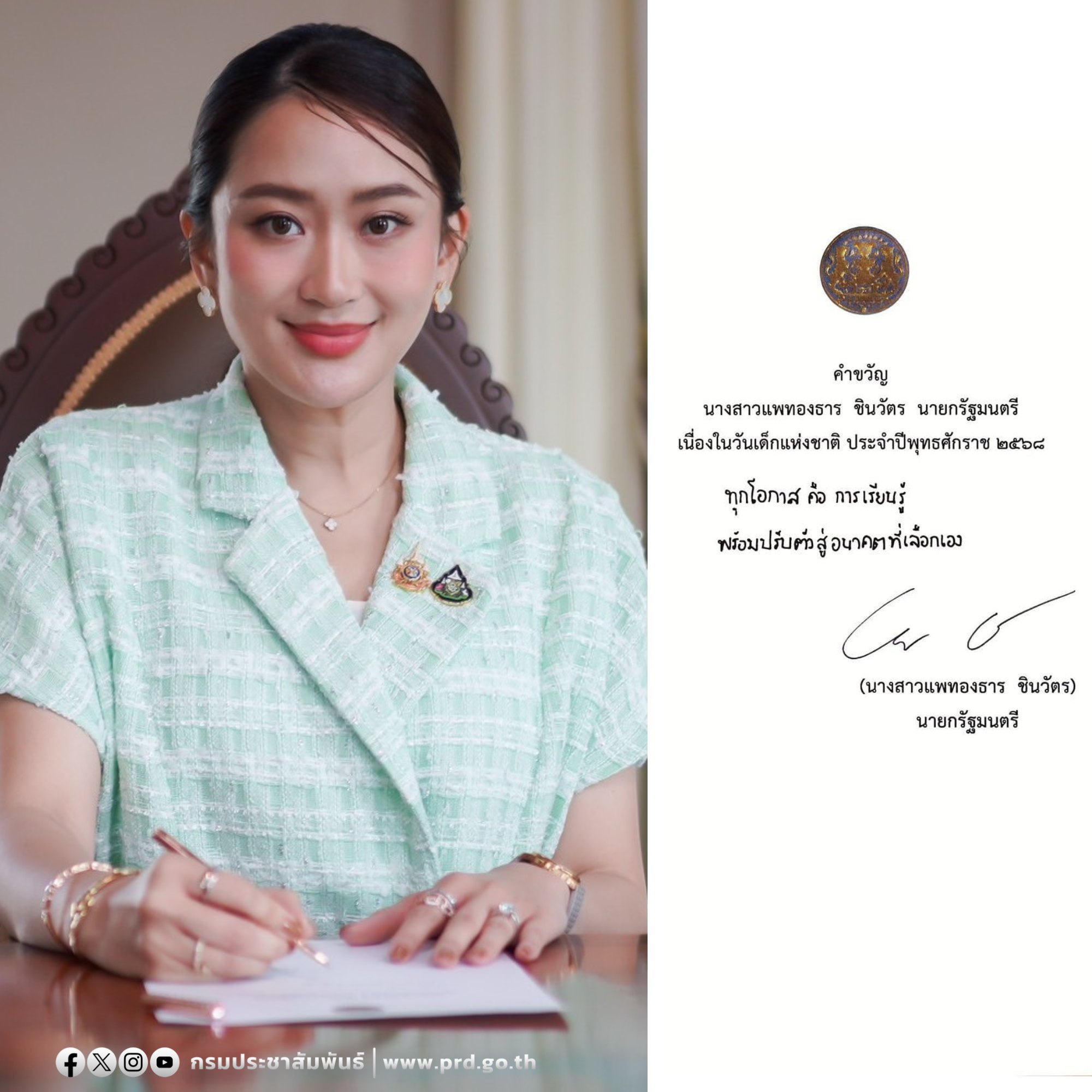คำขวัญเนื่องในวันเด็กแห่งชาติ ประจำปี ๒๕๖๘ จากนายกรัฐมนตรี
