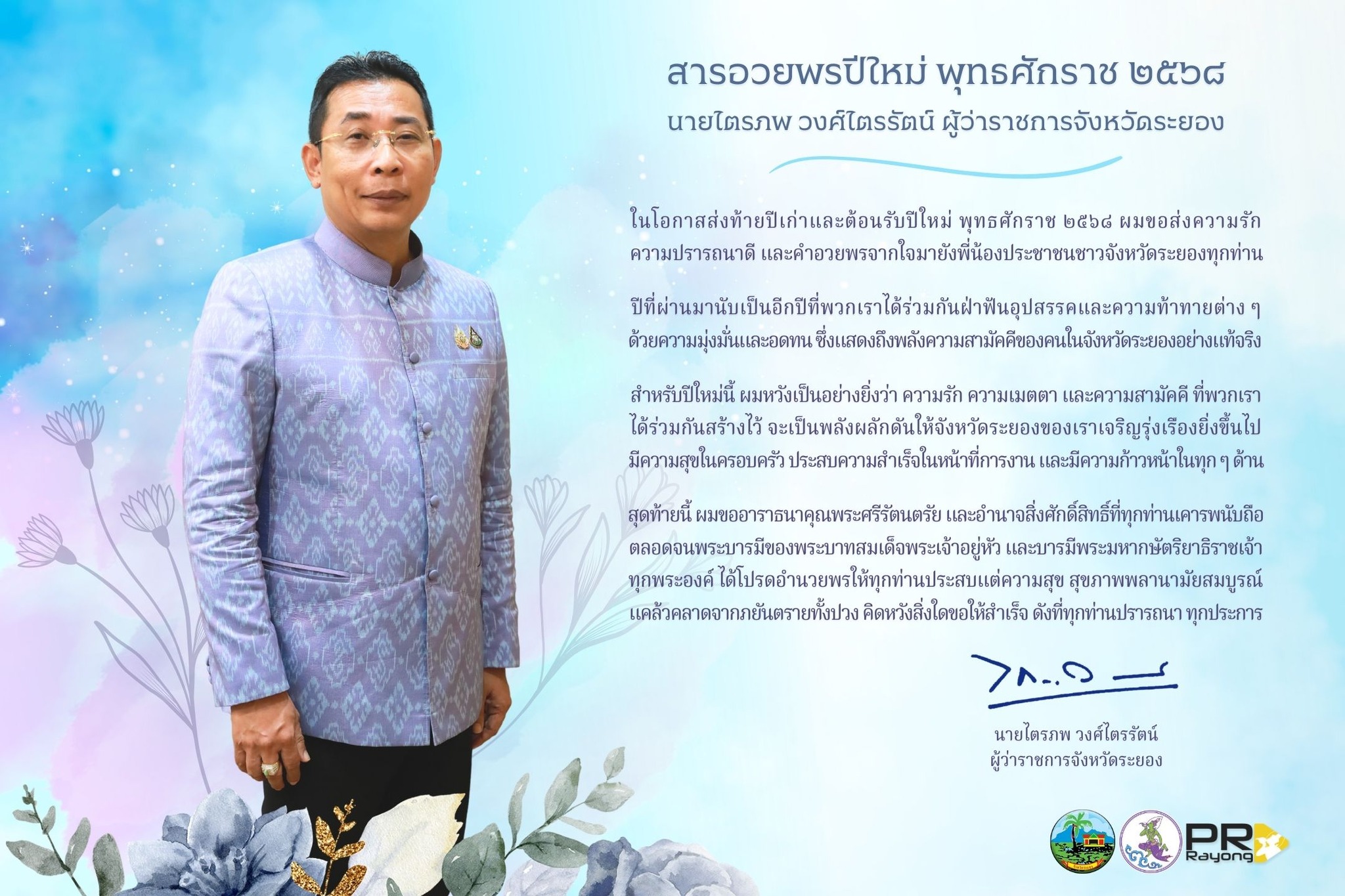 สารอวยพรปีใหม่ พ.ศ. ๒๕๖๘ จากผู้ว่าราชการจังหวัดระยอง