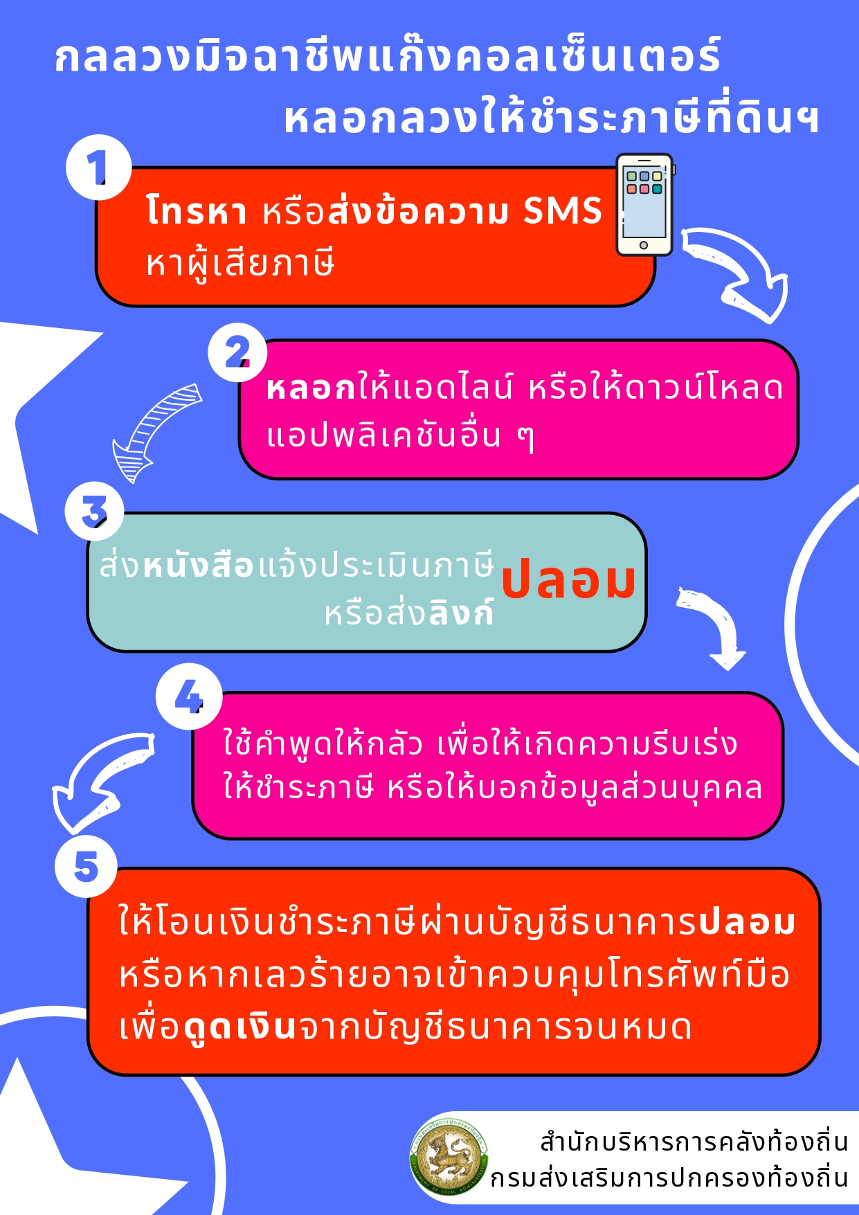 -แจ้งกลลวงมิจฉาชีพแก๊งคอลเซ็นเตอร์หลอกลวงให้ชำระภาษีที่ดินและสิ่งปลูกสร้าง