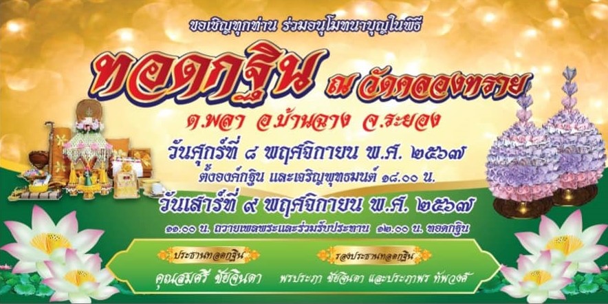 🙏วัดคลองทราย ต.พลา อ.บ้านฉาง จ.ระยอง พิธีถวายผ้ากฐิน ในวันเสาร์ที่ ๙ พฤศจิกายน ๒๕๖๗ เวลา ๑๒.๐๐ น.