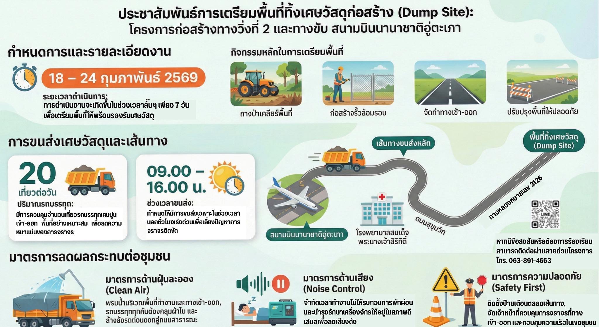 • ด้านความปลอดภัย: ติดตั้งป้ายเตือนตลอดเส้นทาง เข้า-ออก และควบคุมความเร็วในเขตชุมชน