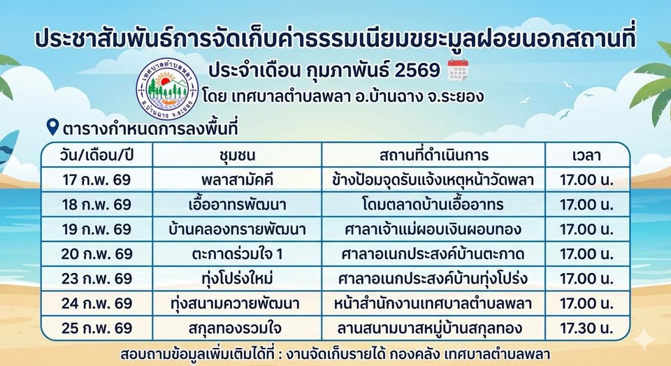 📢ประชาสัมพันธ์ กำหนดการให้บริการจัดเก็บค่าธรรมเนียมขยะมูลฝอย นอกสถานที่ ประจำปี 2569