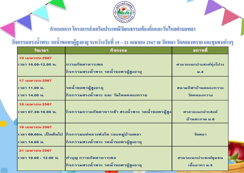 กำหนดการ โครงการส่งเสริมประเพณีวัฒนธรรมท้องถิ่นและวันไหล
