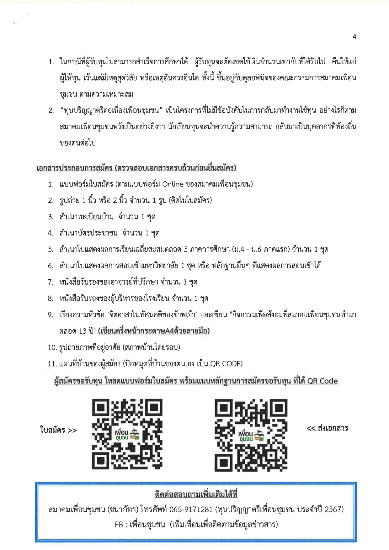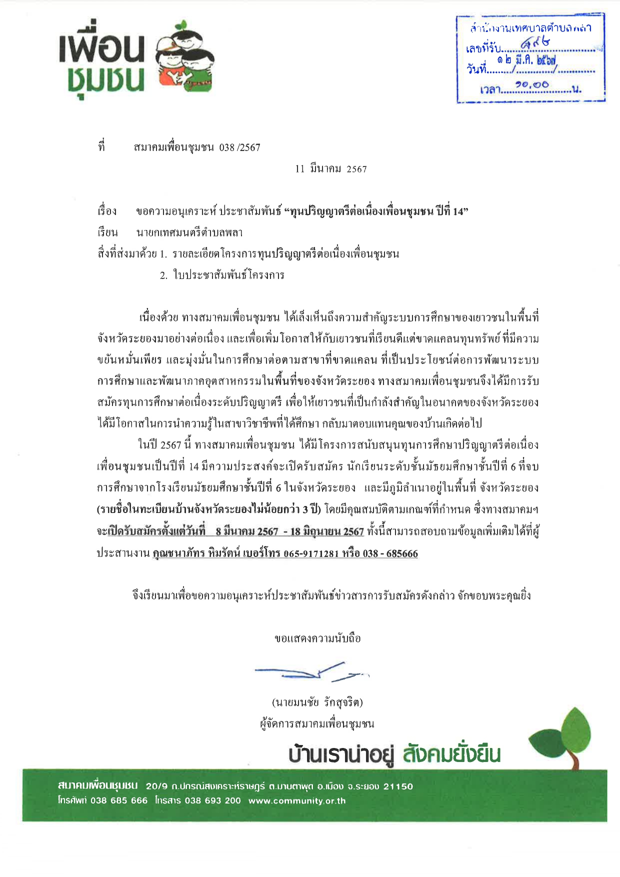 สมาคมเพื่อนชุมชน แจ้งประชาสัมพันธ์โครงการสนับสนุน"ทุนการศึกษา