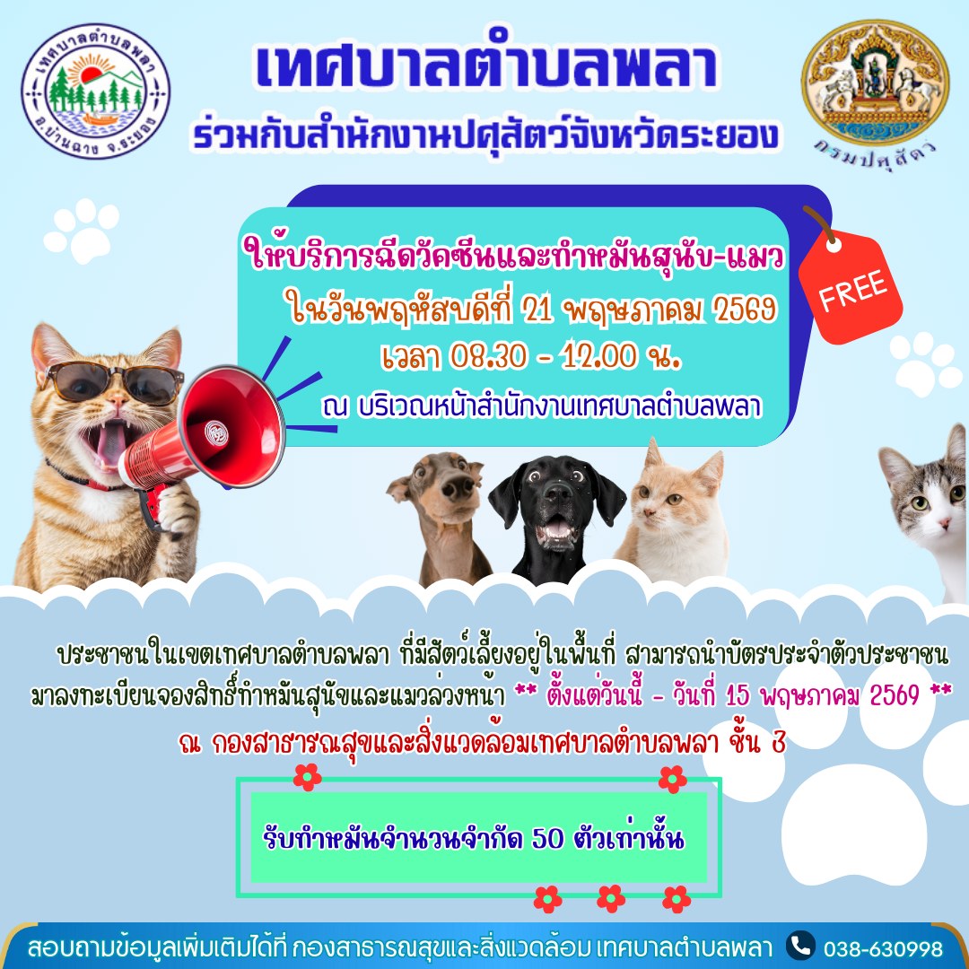 ☎️ สอบถามรายละเอียดเพิ่มเติมได้ที่ กองสาธารณสุขและสิ่งแวดล้อม โทร.๐๓๘-๖๓๐๙๙๘