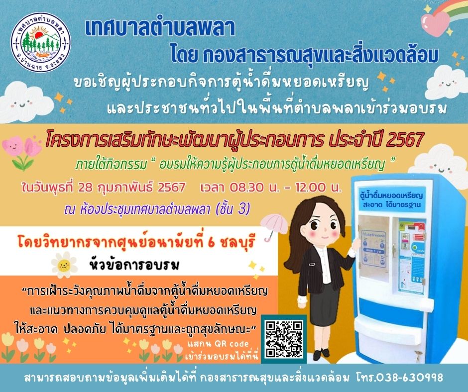 ขอเชิญชวนเข้าร่วมอบรมให้ความรู้ผู้ประกอบการตู้น้ำดื่มหยอดเหรียญ