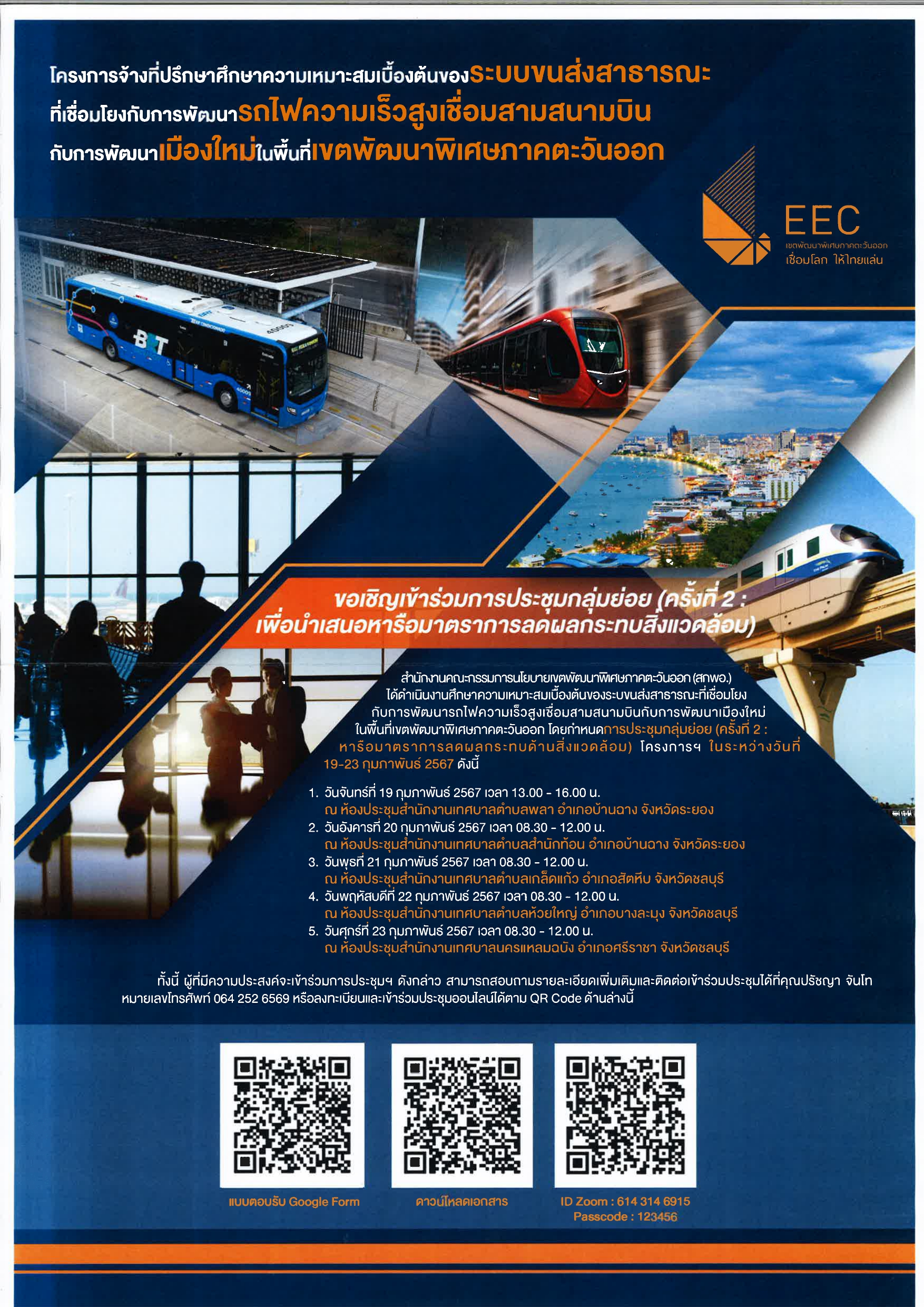 - สำนักงานคณะกรรมการนโยบายเขตพัฒนาพิเศษภาคตะวันออก (สกพอ.) ขอเชิญเข้าร่วมการประชุมกลุ่มย่อย (ครั้งที่ ๒ : มาตรการลดผลกระทบด้านสิ่งแวดล้อม)