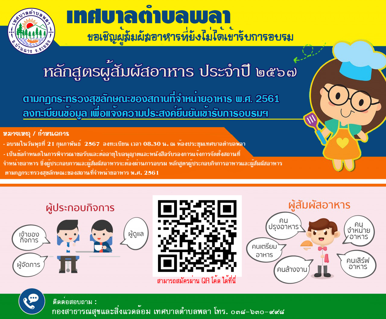 "ขอเชิญชวนเข้าร่วมอบรมหลักสูตร ผู้สัมผัสอาหาร ประจำปี ๒๕๖๗"