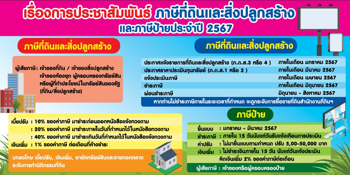 การชำระภาษีที่ดินและสิ่งปลูกสร้าง และภาษีป้ายประจำปี ๒๕๖๗