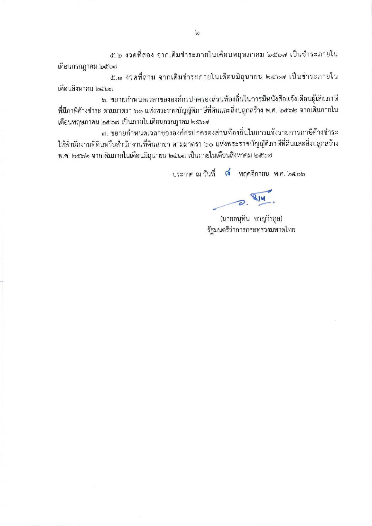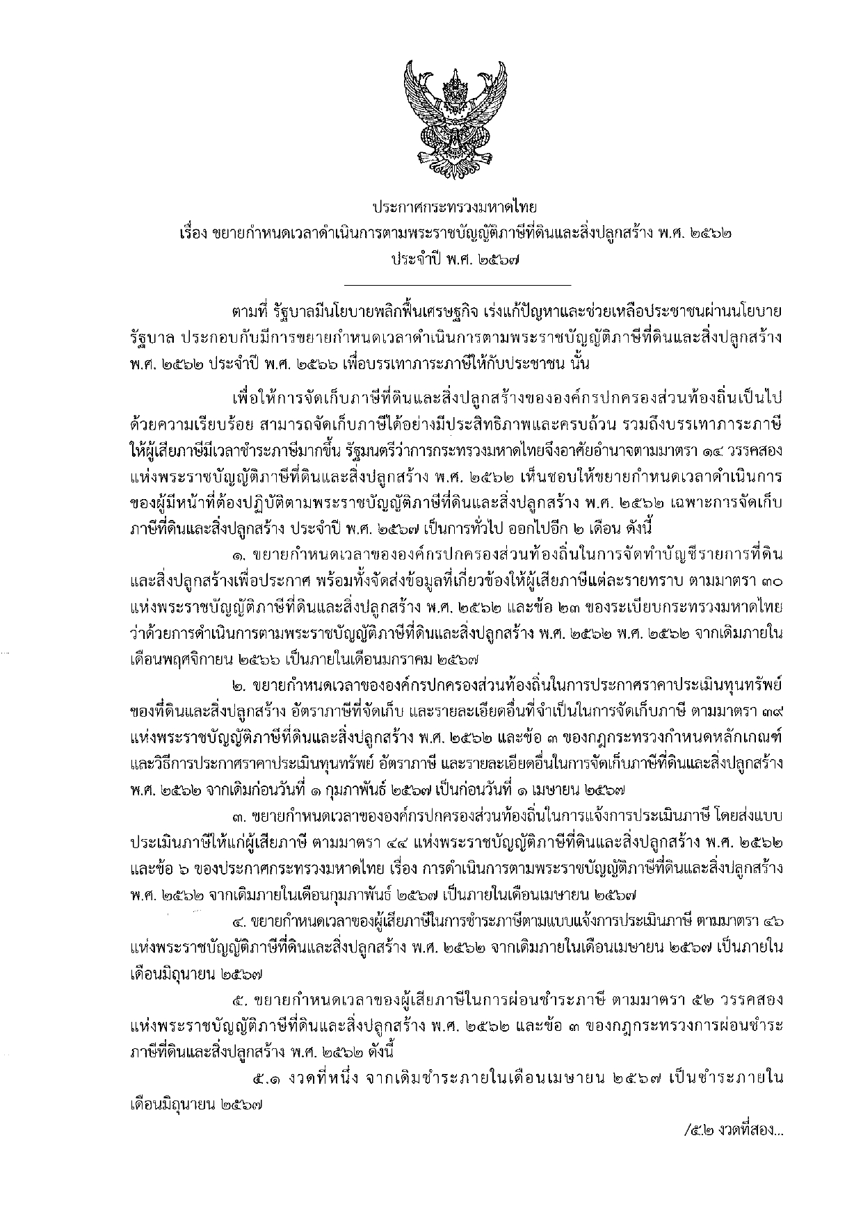 ขยายกำหนดเวลาดำเนินการตามพระราชบัญญัติภาษีที่ดินและสิ่งปลูกสร้าง