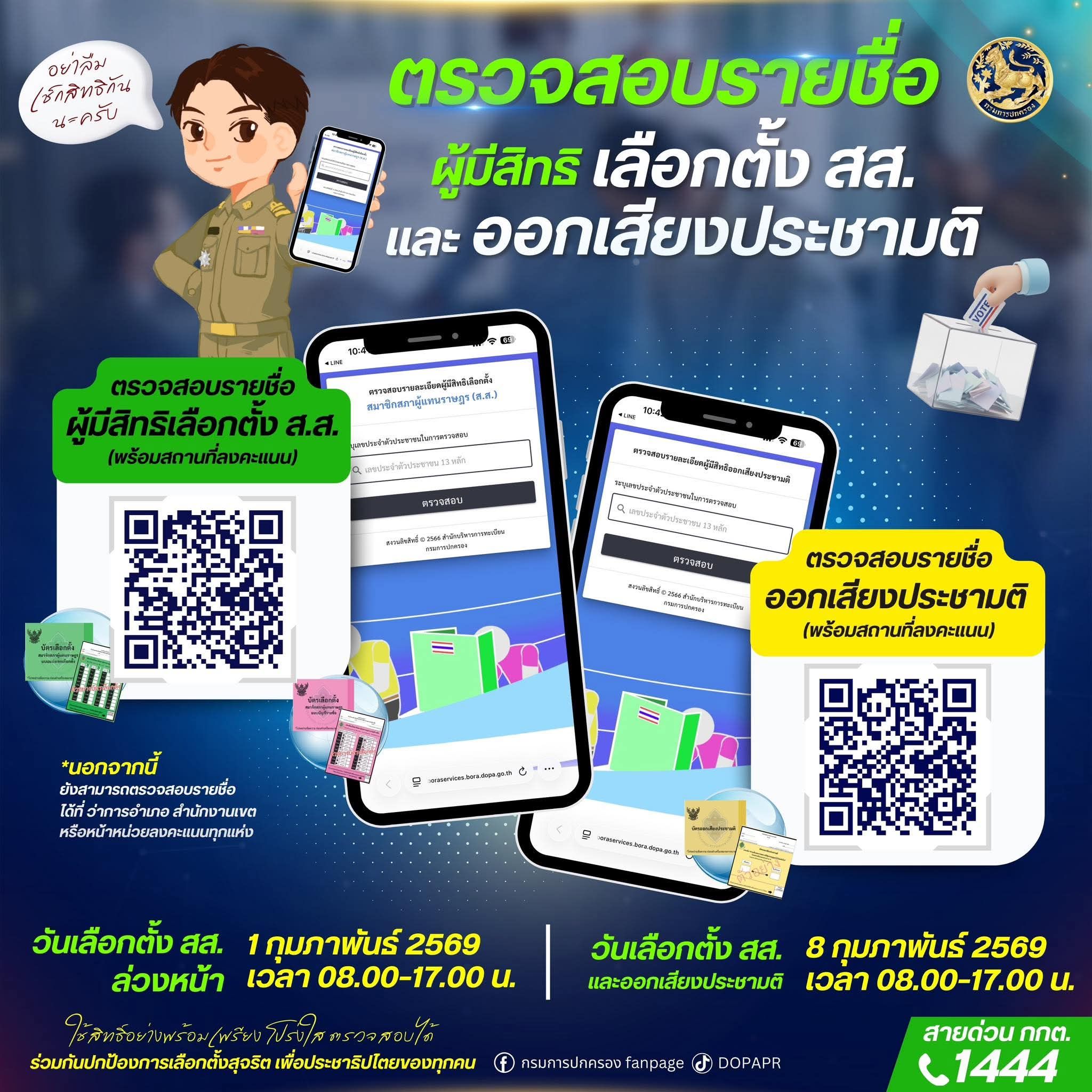 ตรวจสอบรายละเอียดผู้มีสิทธิเลือกตั้ง สมาชิกสภาผู้แทนราษฎร และตรวจสอบรายละเอียดผู้มีสิทธิออกเสียงประชามติ
