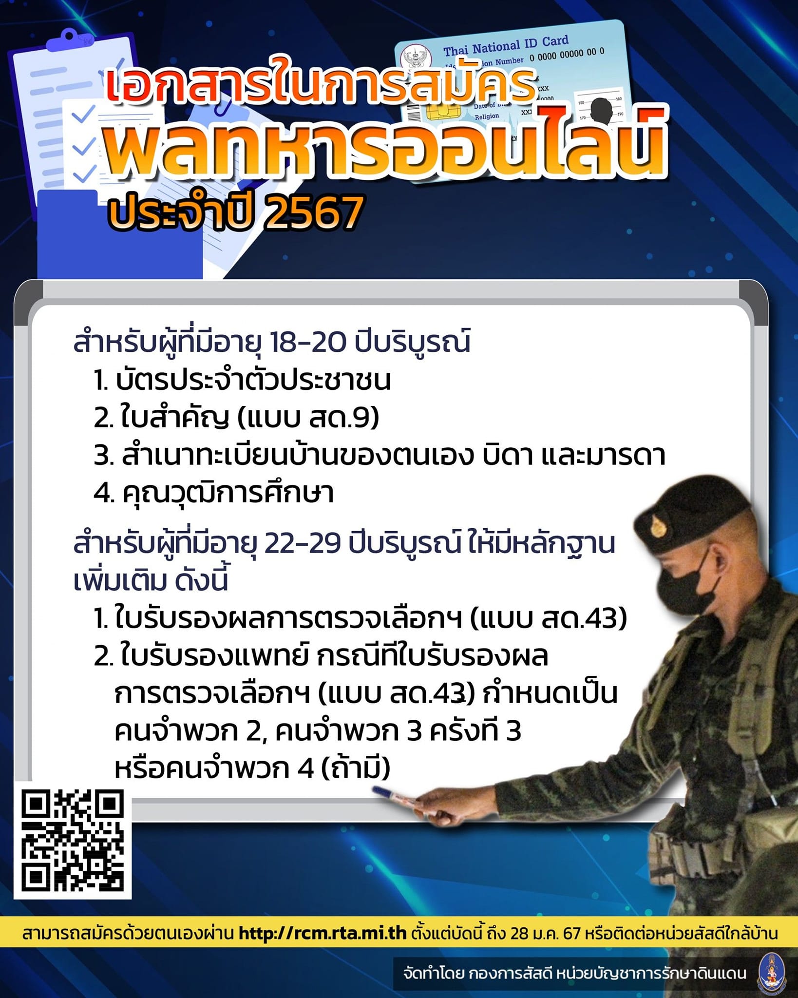 เปิดรับสมัครพลทหารออนไลน์ ประจำปี ๒๕๖๗