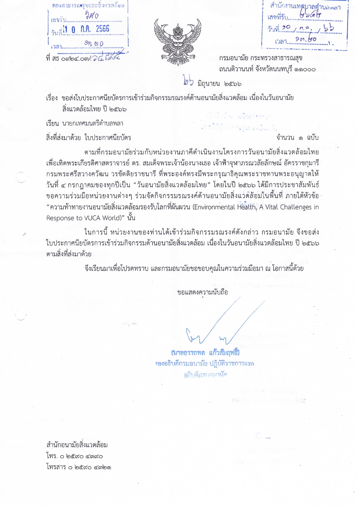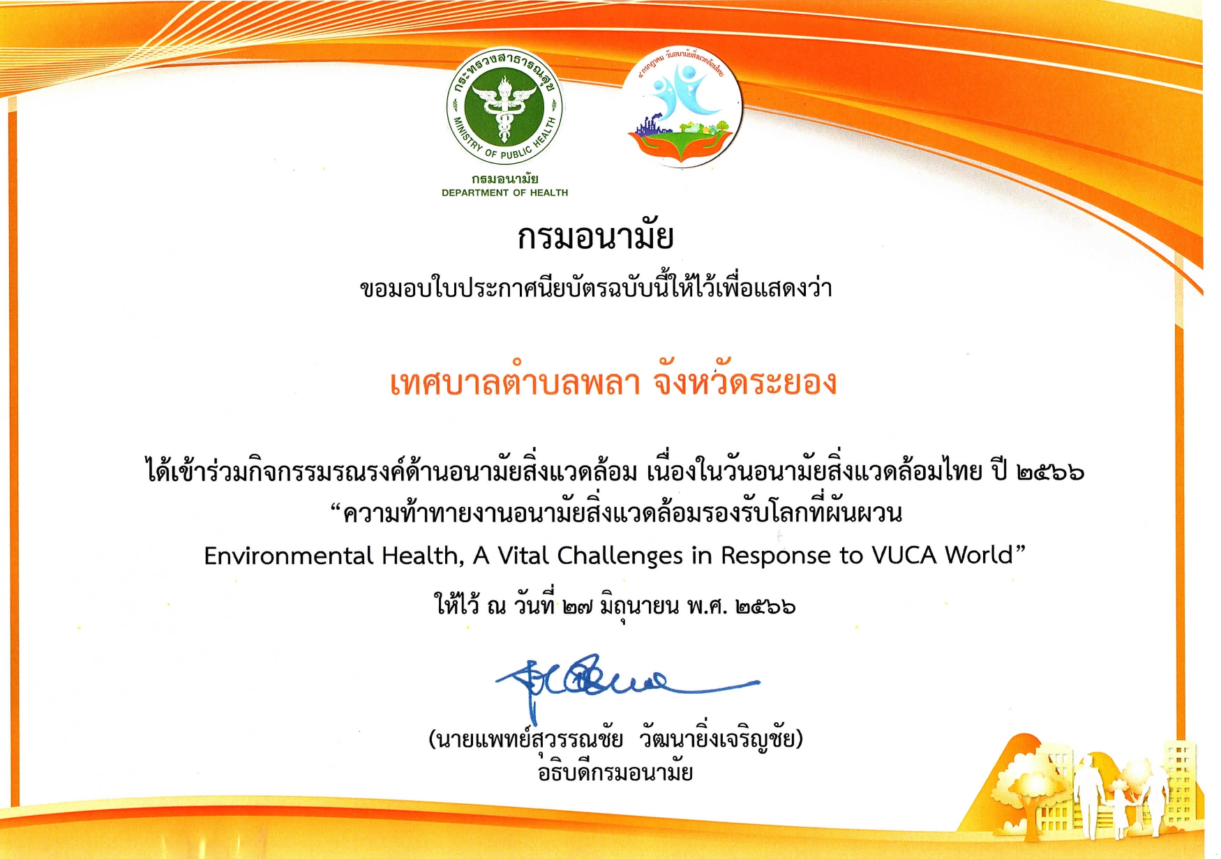 ประกาศนียบัตรการเข้าร่วมกิจกรรมด้านอนามัยสิ่งแวดล้อม