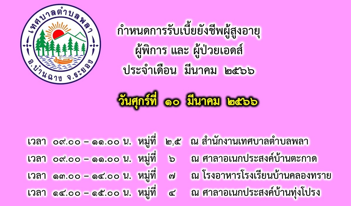 กำหนดการรับเบี้ยยังชีพผู้สูงอายุ ผู้พิการ และผู้ป่วยเอดส์