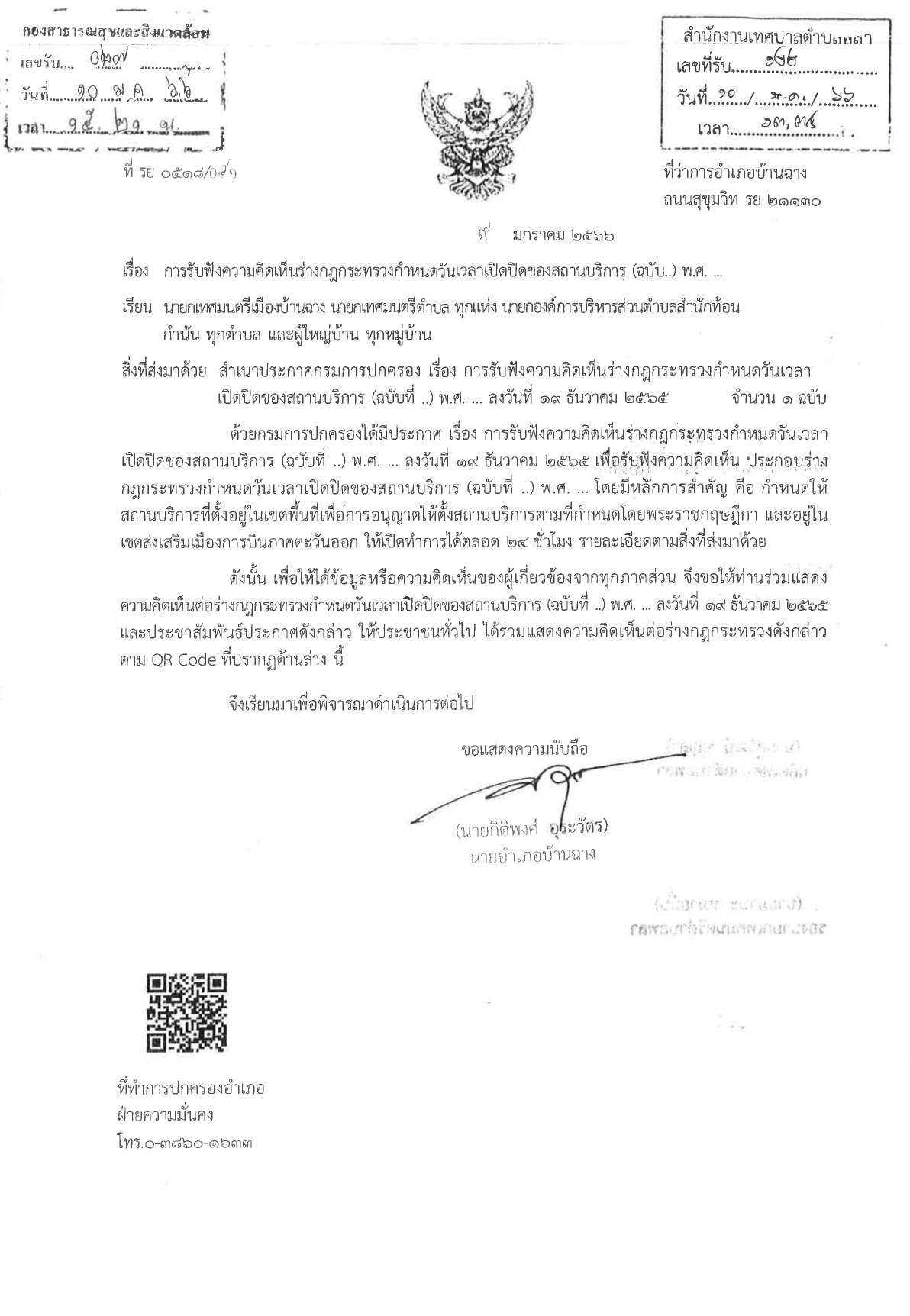 ร่างกฎกระทรวงกำหนดวันเวลาเปิดปิดของสถานบริการ