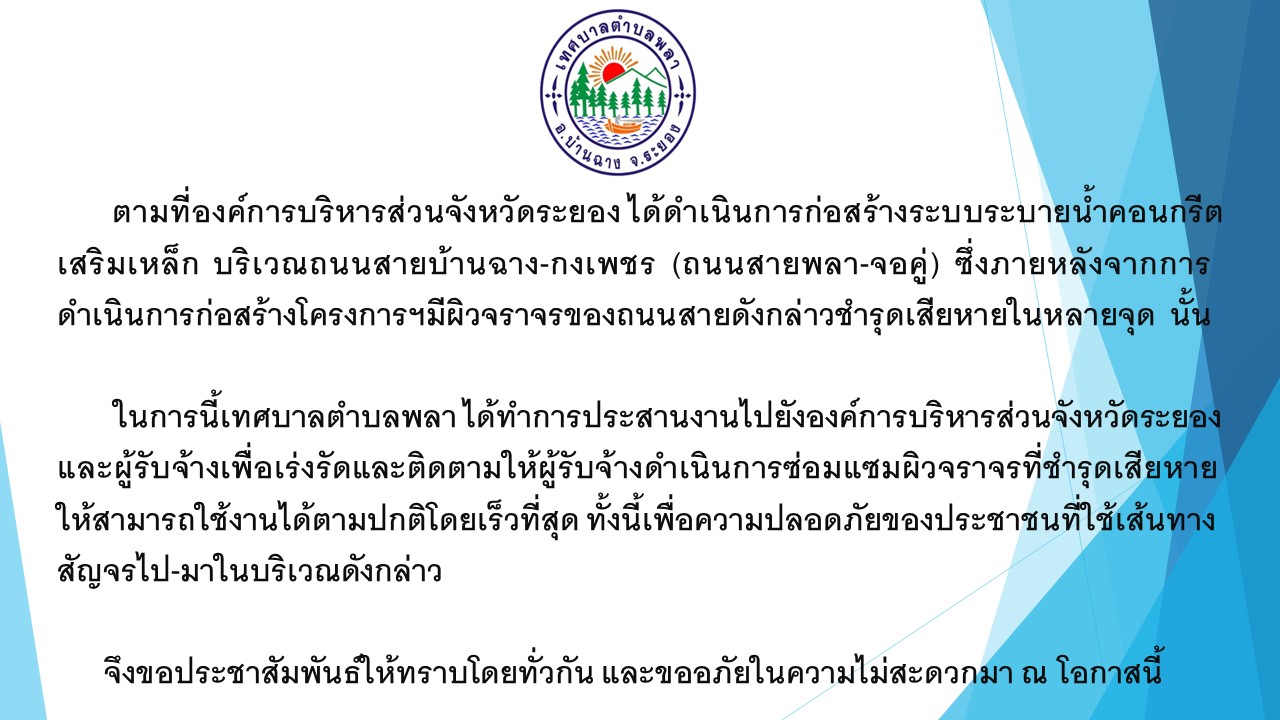 การดำเนินการซ่อมแซมผิวจราจรที่ชำรุดเสียหาย