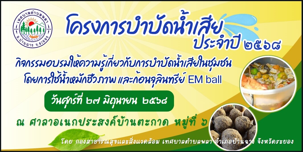 📢 ขอเชิญเข้าร่วมกิจกรรมอบรมให้ความรู้เกี่ยวกับการบำบัดน้ำเสียในชุมชน โดยการใช้น้ำหมักชีวภาพ และก้อนจุลินทรีย์ EM ball ใน