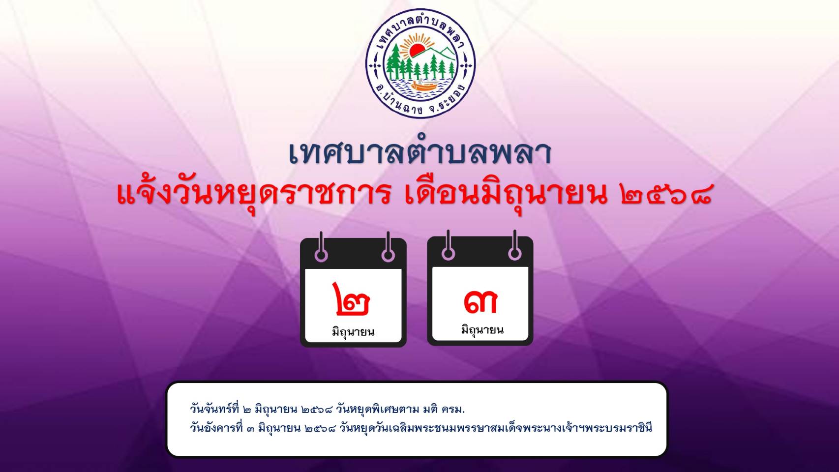แจ้งวันหยุดราชการเดพือนมิถุนายน 2568