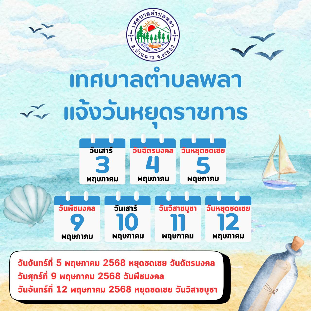 แจ้งวันหยุดราชการเดือนพฤษภาคม 2568