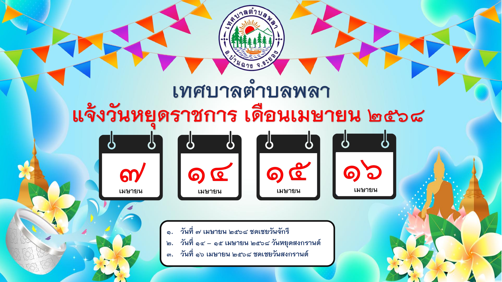 แจ้งวันหยุดราชการ เดือนเมษายน ๒๕๖๘